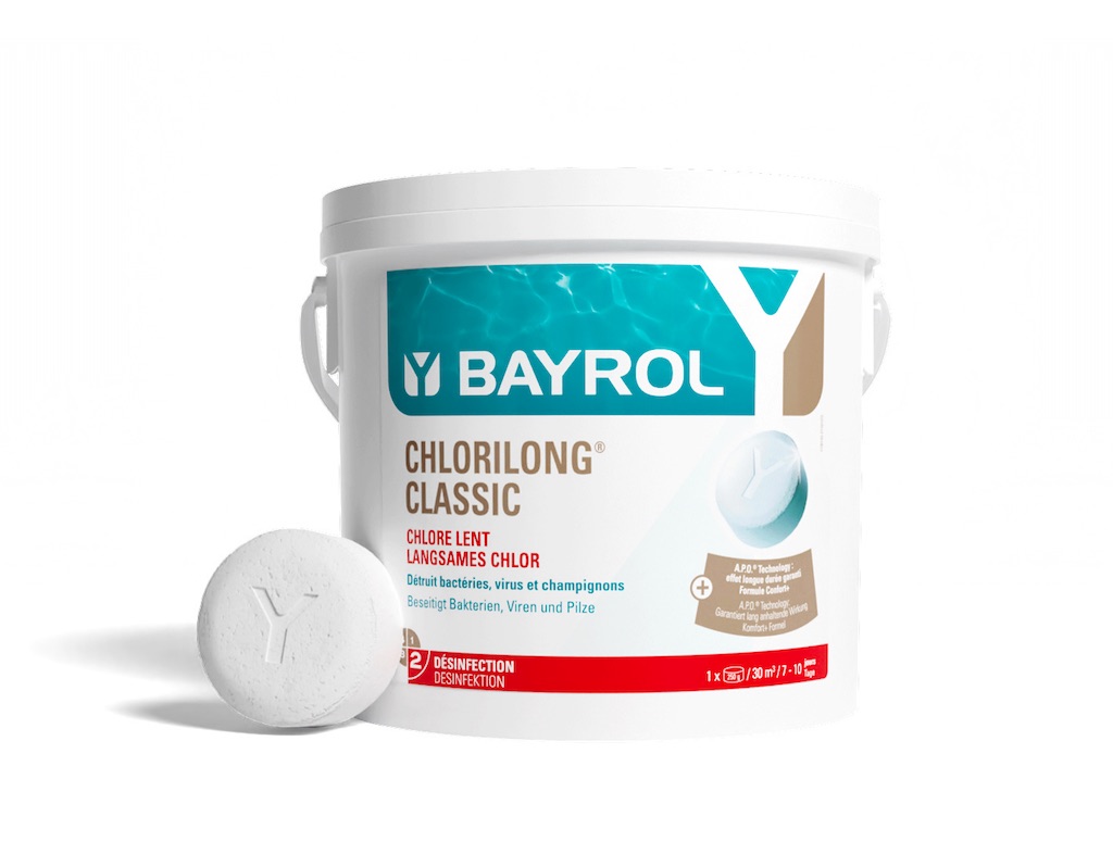 Slow dissolving tablets for long-term disinfection of water Chlorilong